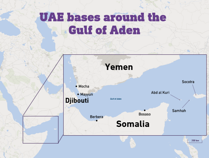The island bases are connected by maritime routes, infrastructure patterns and intelligence facilities to the UAE’s military presence in Bosaso and Berbera, two ports in Somalia’s Puntland and Somaliland regions.